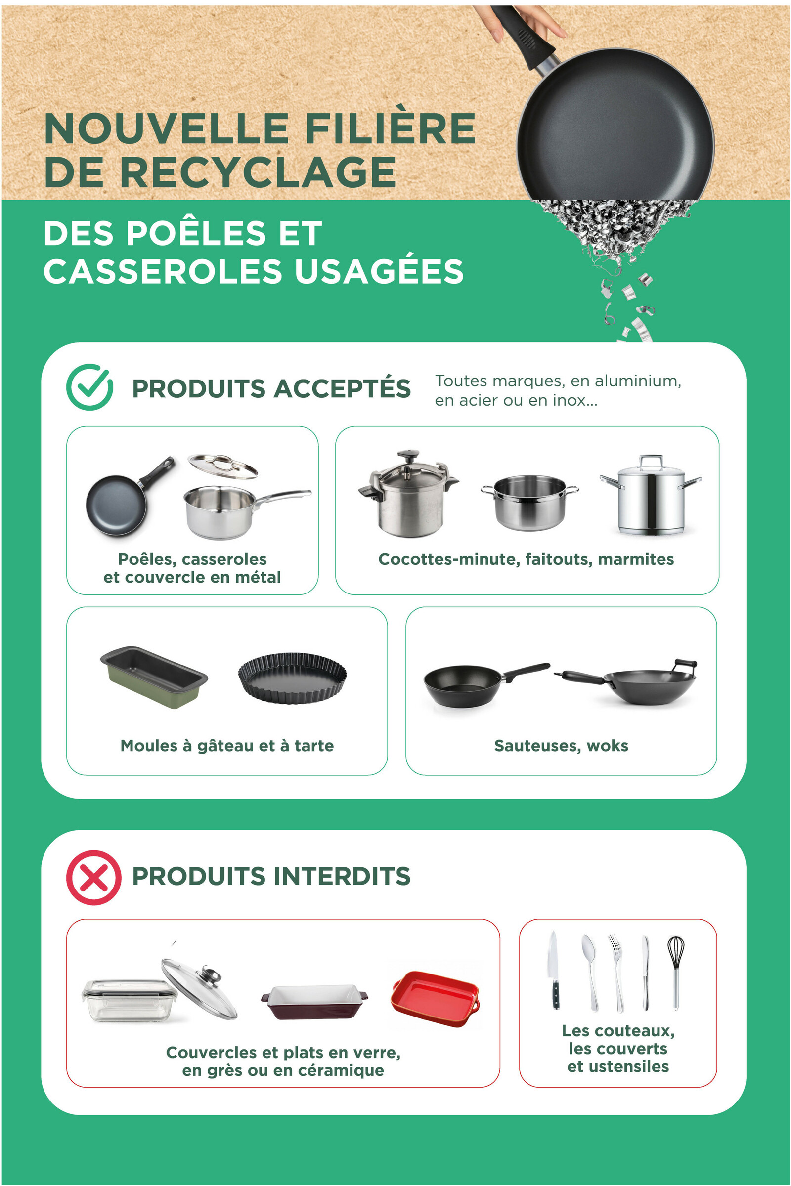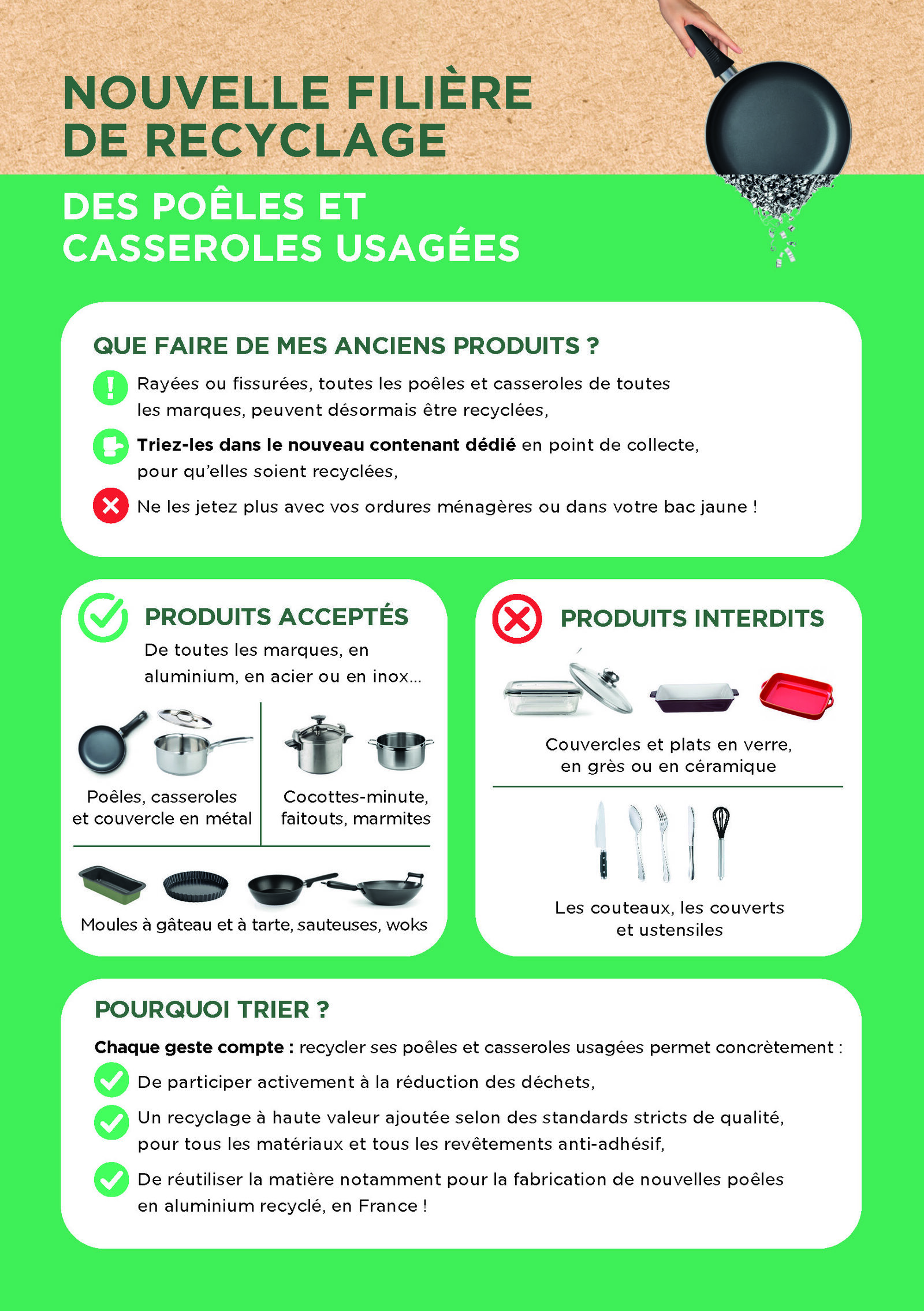 En collaboration avec le Groupe Seb pour la marque Tefal, une nouvelle filière de collecte et de recyclage pour les poêles et casseroles usagées. est en place