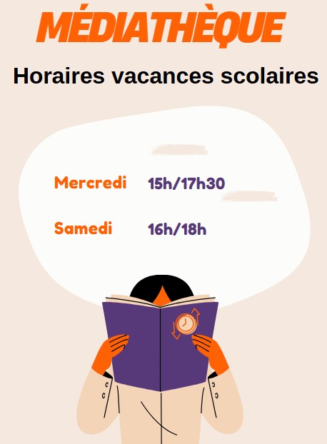 Horaires d ouverture de la Médiathèque pendant les vacances scolaires Mercredi de 15h à 17h30 Samedi de 16h à 18h
