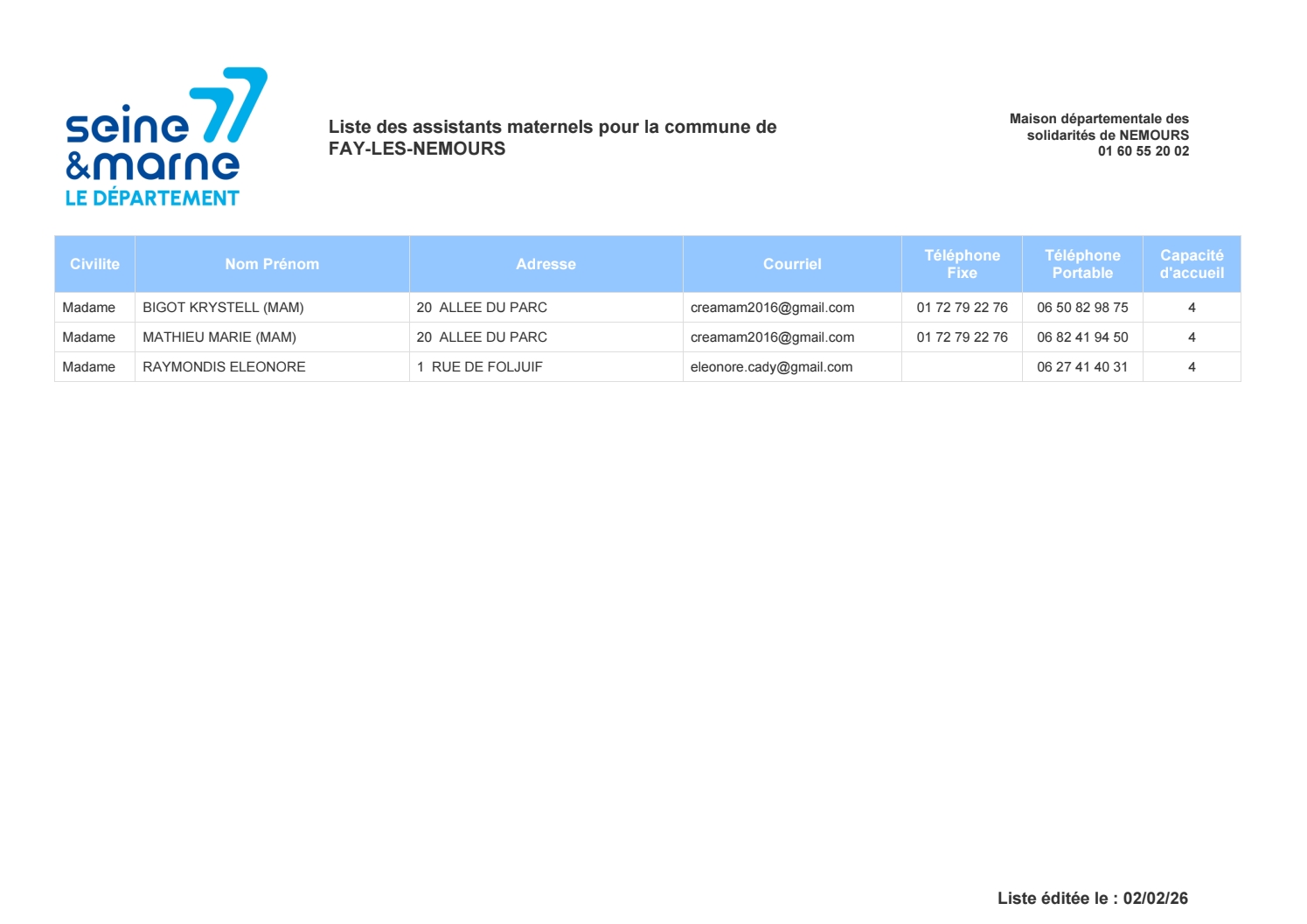 adresse mail : rpe@paysdenemours.fr
