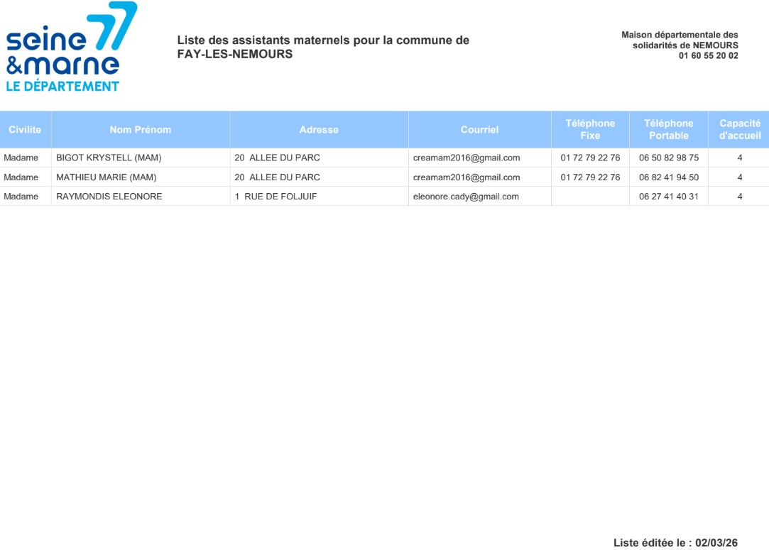Liste des assistantes maternelles à Faÿ-lès-Nemours
