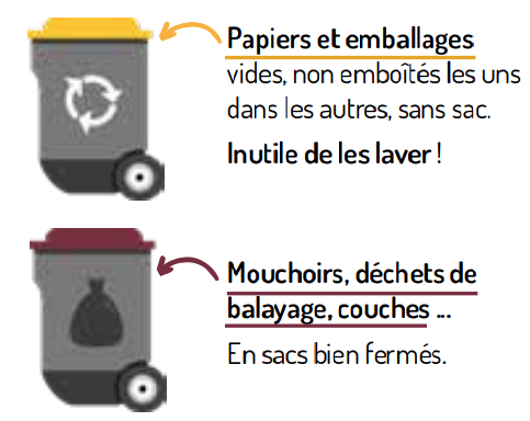 Toutes les collectes ont lieu le matin. Pensez à sortir vos bacs la veille au soir